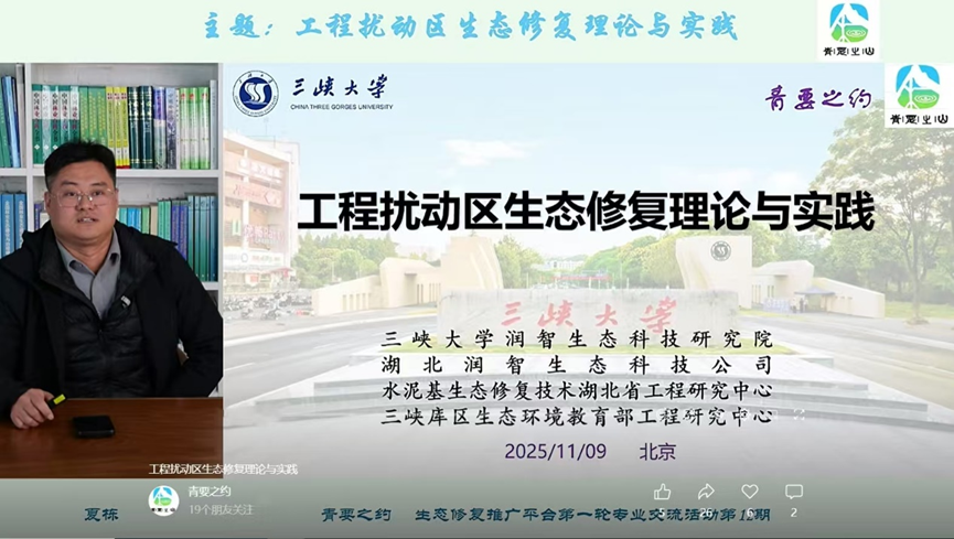 2025年11月9日18:50,“靑要之約”生態(tài)修復(fù)推廣平臺第一輪專業(yè)交流活動的第12期如約在云端開啟,并取得圓滿成功。本期活動聚焦當(dāng)前生態(tài)修復(fù)領(lǐng)域的重點與難點——工程擾動區(qū)生態(tài)修復(fù),特邀我司在該領(lǐng)域具有深厚理論積淀和豐富項目經(jīng)驗的夏棟總工擔(dān)任主講嘉賓。夏棟總工以《工程擾動區(qū)生態(tài)修復(fù)理論與實踐》為題,為行業(yè)同...